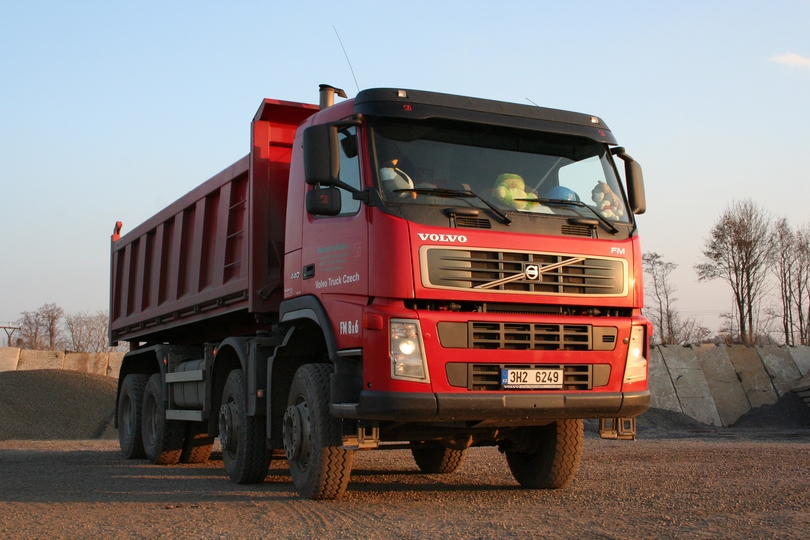 Nákladní sklápěč pro přepravu stavebních materiálů.